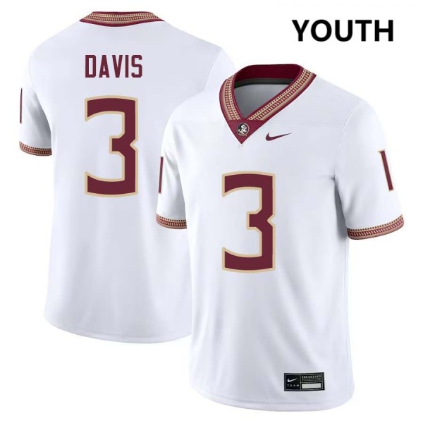 • Kam Davis FSU Seminoles #3 Youth College Football 2025 Jersey - White