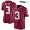 • Kam Davis FSU Seminoles Women's 2025 #3 College Football Jersey - Garnet