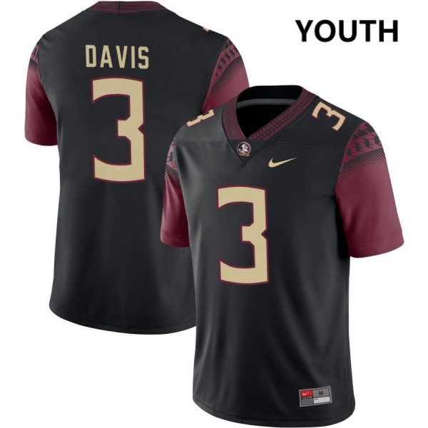 • Kam Davis FSU Seminoles Youth College Football #3 University Jersey - Black
