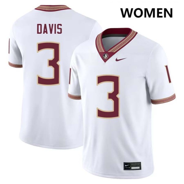 • Kam Davis FSU Stitched College Football Women #3 Jerseys - White