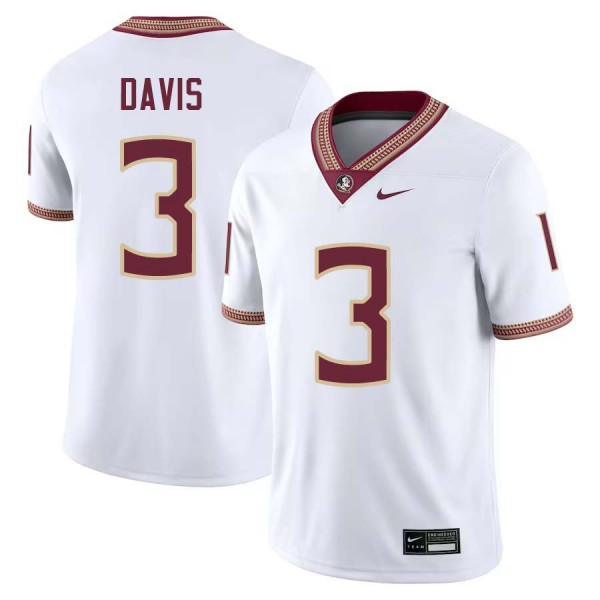 • Kam Davis Noles Mens #3 Game College Football Jersey - White