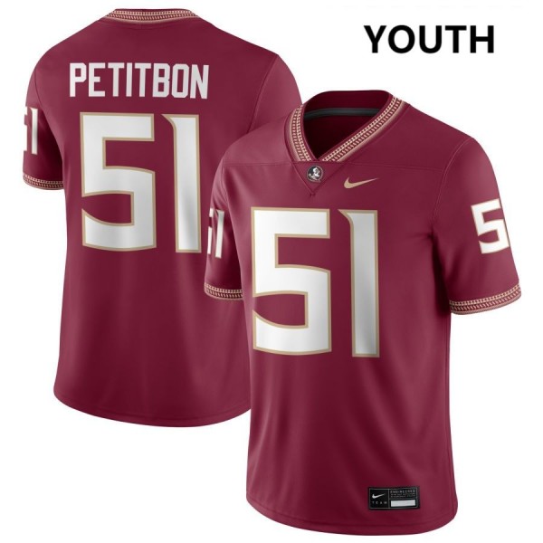 • Luke Petitbon FSU Seminoles Youth College Football Official #51 Jersey - Garnet