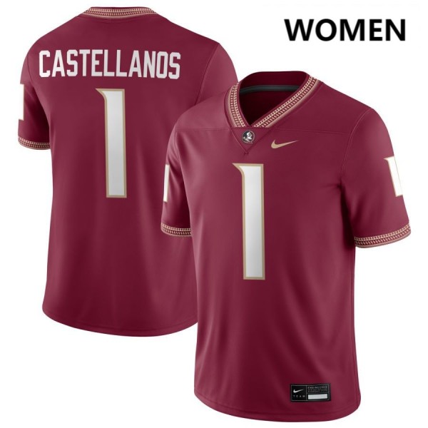 • Tommy Castellanos Florida State College Football Official #1 Women's Jerseys - Garnet